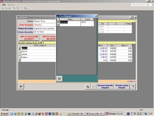 - Blagajna................................................pokreće se forma za rad sa blagajnom