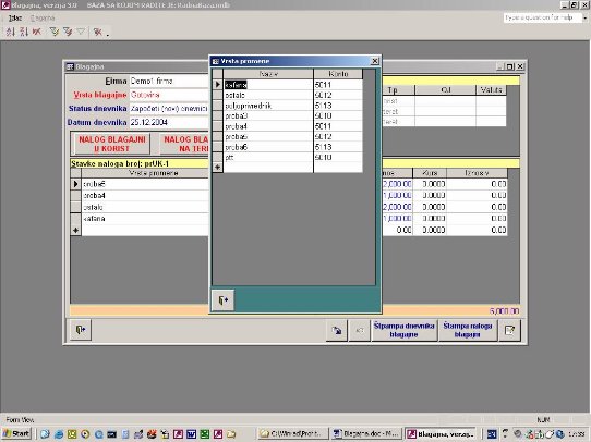 - vrši se izbor vrste blagajne – različite vrste blagajne mogu imati isti datum. Vrsta se bira preko combo box-a, a unos nove vrši se dvoklikom mišem ili F5 (sl. 3). Unosi se naziv vrste i konto blagajne na koji se knjiži ta vrsta.