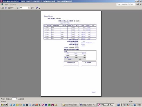 Izborom ovog dugmeta vrši se štampa dnevnika blagajne generisanog od unetih naloga blagajni (sl. 9).
