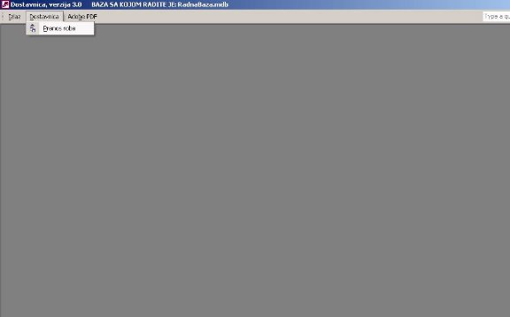 Na sl. 1 prikazan je glavni meni programa dostavnice. Rad sa menijima (menu bar), paletama sa alatkama (toolbar) detaljno je obrađen u uvodnim napomenama za rad sa aplikacijom Profit soft u Windows okruženju. Osnove rada sa programima objašnjene su u modulu trgovina i usluge te će ovde biti objašnjene samo specifičnosti za dostavnice.