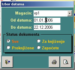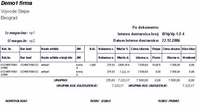 Vrsta dokumenta određuje iz koga magacina izlazi artikal i u koji magacin će biti urađen ulaz. Način rada je isti.