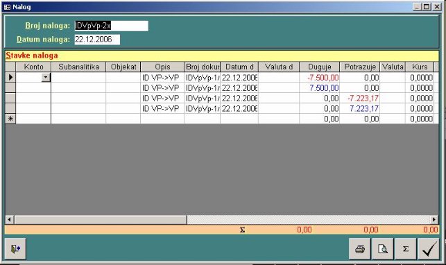 dostavnice. Tek knjiženjem naloga izborom dugmeta ažuriraju se zalihe i nalog odlazi u glavnu knjigu.