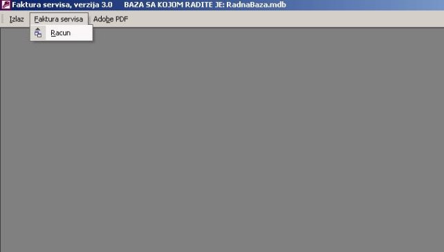 Izborom stavke «Račun» iz glavnog menija otvoriće se ekranski formular koji služi za unos i ažuriranje faktura servisa (sl. 2).