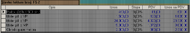 Opis, Iznos, Stopa, PDV i Iznos sa PDV