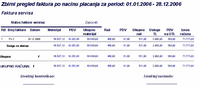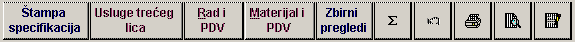 - štampa specifikaciju koja ide uz fakturu servisa. Bira se pregled specifikacije.