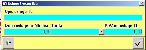 - omogučava da se unesu usluge koje je radilo treće. Poziva se forma za unos usluga.