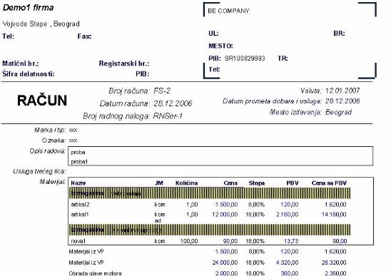 - program iz radnih naloga servisa gde je uneto vreme i cene norma časa formira cenu radova. Dodaje se red «Radovi» u tabeli sa stavkama.