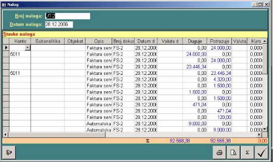 služi za generisanje naloga i knjiženje fakture knjigovodstveno. Pojavljuje se kada je u servisu programa podešeno automatsko knjiženje. Ukoliko je knjiženje preko KiCentra onda se