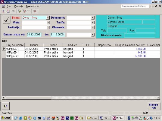 - izabere se firma - iz spiska otvorenih firmi program uvek nudi prvu firmu sa spiska ili konkretnu firmu ukoliko se vodi samo jedna.
