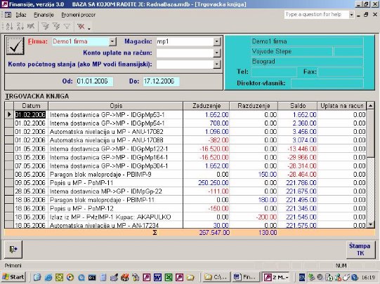 Trgovačka knjiga se generiše iz izvorne dokumentacije svaki put kada se želi videti (sl. 47). Vodi se po maloprodajnim cenama. Generiše se bez obzira da li firma vodi zalihe u maloprodaji komadno ili samo finansisjki.