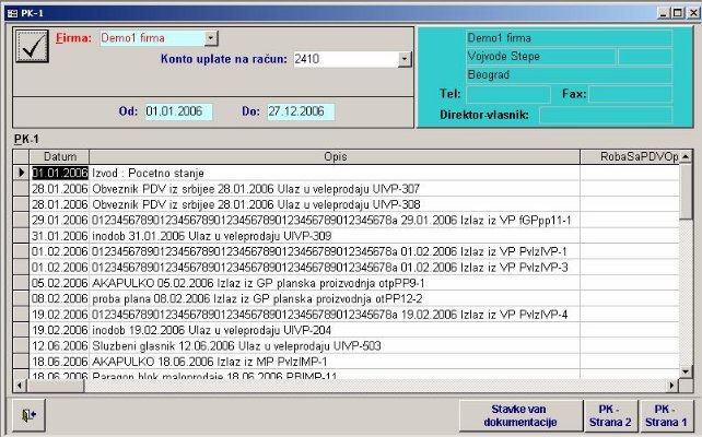 PK-1 se generiše iz izvorne dokumentacije svaki put kada se želi videti (sl. 48). Ovim izveštajem je omogućeno da se preko dvojnog knjigovodstva vodi firma sa prostim knjigovodstvom.