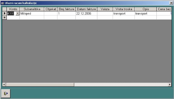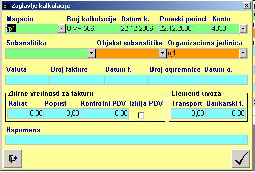 - unose se svi ulazni računi koji su vezani za kalkulaciju. To su računi za zavisne troškove i računi vezani za uvoznu kalkulaciju.