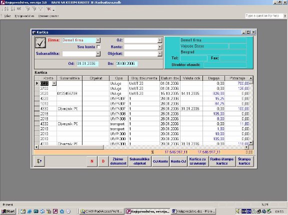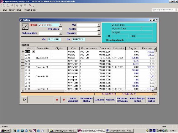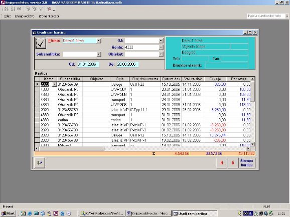 Služi za izradu finansijskih kartica (sl. 3). Kartica će sadržati sve stavke naloga iz glavne knjige koje zadovoljavaju uneti kriterijum.