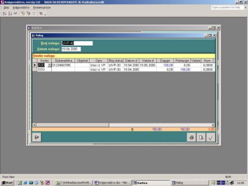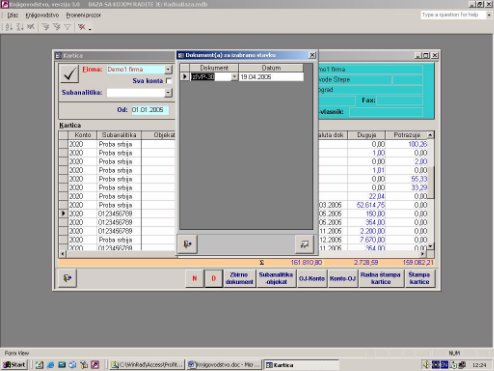 Omogućava da se vidi dokument čijim knjiženjem je nastala stavka naloga na kojoj je pokazivač u kartici (sl. 11). Na ekranu se dobije dokument ukoliko je automatsko knjiženje ili spisak dokumenata ukoliko je knjiženje preko KiCentra. Izborom na dokument on se može videti.