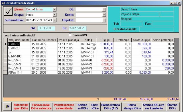 - Radna štampa IOS-a – u skraćenom obliku se štampaju IOS-i za sve komitente na izabranom kontu