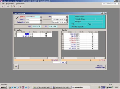 Program nudi kompletne IOS-e za kompenzaciju. Omogućeno je da se proizvoljno izabere koje stavke ulaze u kompenzacju čekiranjem u koloni kompenzacija (sl. 28).