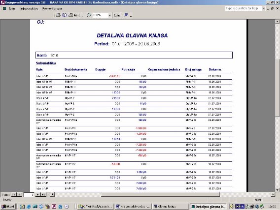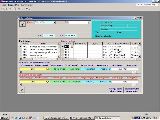 Glavna knjiga se na ekranu prikazuje u drugačijem obliku nego na štampi (sl. 29). Ekranski prikaz služi za brzi pregled nekog podatka.