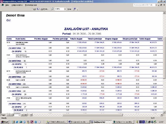 - Prikazuje se zbir svih stavki za sva konta koja su radila