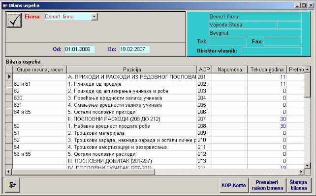 Omogućava izradu bilansa uspeha (sl. 35). Obrazac se radi iz proknjiženih stavki. Moguće je raditi bilo kada u toku godine.