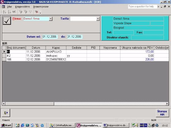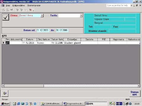 - izabere se firma - iz spiska otvorenih firmi program uvek nudi prvu firmu sa spiska ili konkretnu firmu ukoliko se vodi samo jedna.