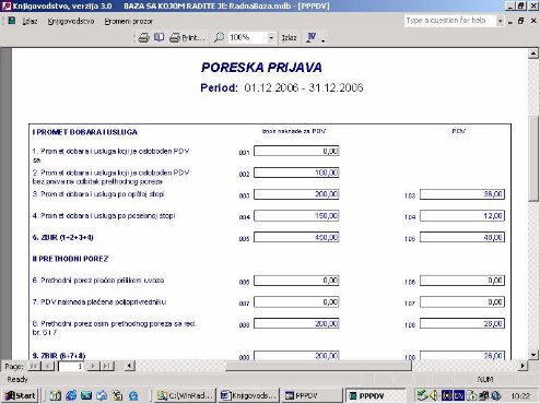 Generiše se na osnovu knjige obračunatog i plaćenog iznosa PDV. Služi za uvid a upisuje se na originalni obrazac (sl. 41).