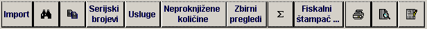 - je komandno dugme koje omogućava da se popišu serijski brojevi artikala koji se prodaju. Ova funkcionalnost je omogućena samo za artikle koji su označeni da se vode po serijskim brojevima. Pritiskom na ovo komandno dugme otvara se sledeći ekranski formular