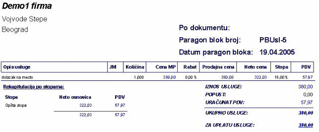 Zaglavlje paragon bloka