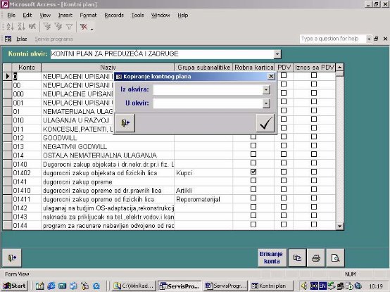 Kontni plan se može i kopirati iz nekog drugog okvira, pa se nakon toga izvrši njegova korekcija za drugu firmu.