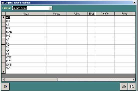 - Organizacione jedinice.........................organizacione jedinice za firmu