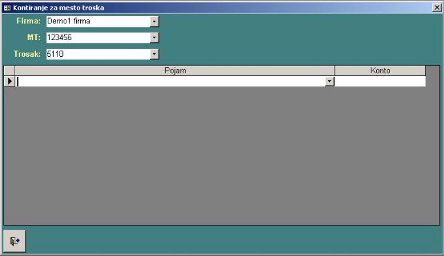 Kontiranje za mesto troška