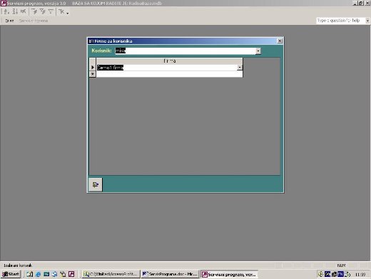 - Firme koje vodi korisnik .......................spisak firmi sa kojima korisnik može da radi