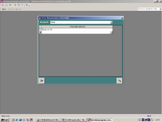 - Vrste dokumenata sa kojima radi..........vrsta dokumenta koju korisnik može da radi